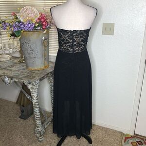 Vintage La Scala Black Lace Body Sheath Dress With Sheer Chiffon Overlay size M