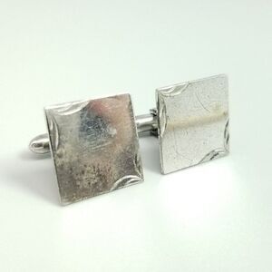 Vintage LaMode Sterling Silver Square Etched Bullet Back Cufflinks, Estate