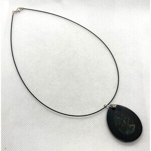 Vintage Labradorite Stone Inlay Pendant 18.5'' Necklace Sterling 925 Silver 16g