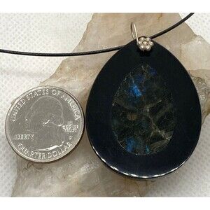 Stone Type: Labradorite inlay in black stone