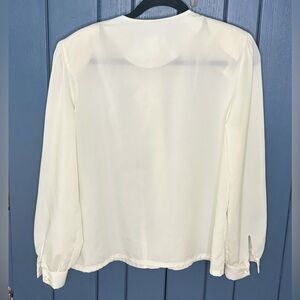 Vintage Lace Applique Cream Blouse 14P Secretary Geek Neutral Cottage Core