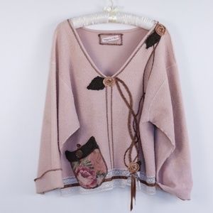 Vintage Lace & Bows Crewneck Off Shoulder Sweater Cute Spring sweater Size M