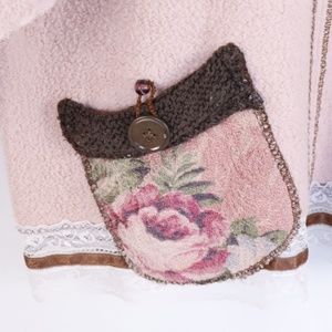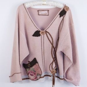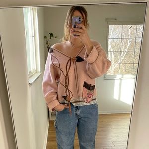 super cute sweater! Can be worn off the shoulder and the lace details and bows are so cute. Size Medium