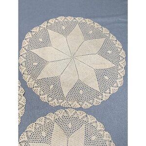 Vintage Lace Doilies Set of 3 Beige Round Crochet Table Decor 11.5" & 9.5"