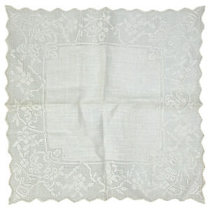 Vintage Lace Handkerchief Lot of 2 Wedding Floral Scalloped Border Knots READ