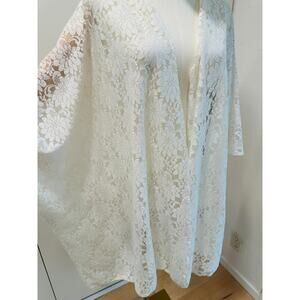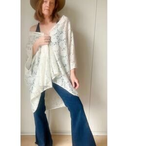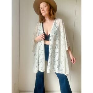 Vintage Lace Kimono Jacket Wrap Shawl White Multi Fit Size Bohemian Hippie