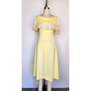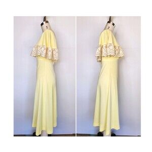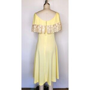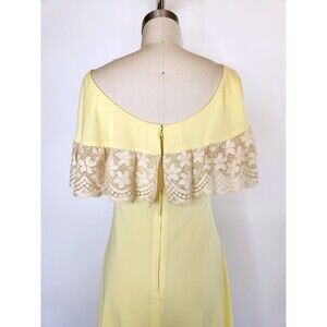 Vintage Lace Off the Shoulders Canary Yellow Dress Over The Shoulders 60s 70s XS