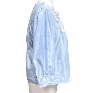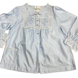 Vintage Lace Pajama Top Wmns Small Pastel Blue Embroidered Long Slv Barbizon 80s