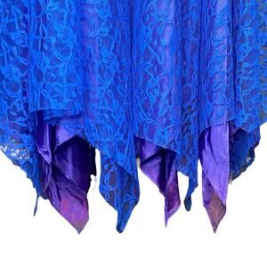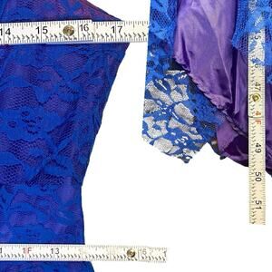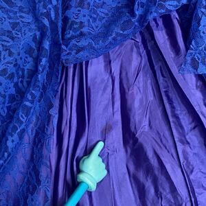 This dress is totally awesome! She has a purple slip with a bright blue lace overlay and a purple tie on the back to adjust the waist.