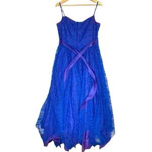 Quinceanera 80s Lace Prom Fairycore Asymmetrical Hem Vintage Dress Womens Small Whimsigoth 1980s FLAW