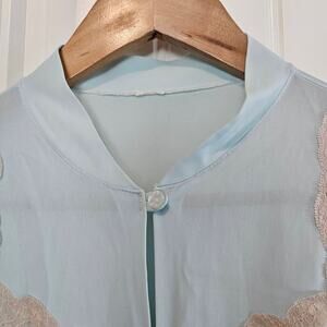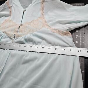Vintage Lace Robe Womens Size Large 80s Pastel Blue Satin Cottage Romantic Retro