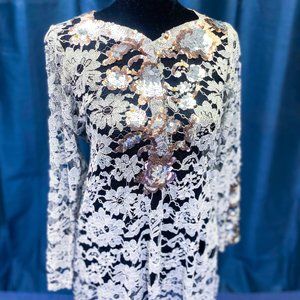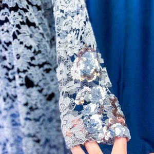 Color : Gray silverish with black lace mesh // Sequin : Amber, tan, Silver