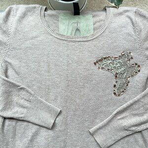 Vintage Lace Sweater with rhinestone and pearl detailing, Size: S/M