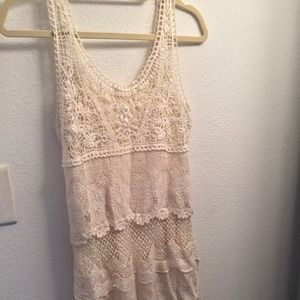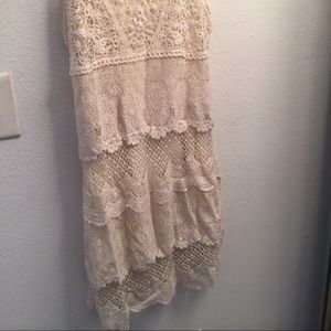 This XS dress from American is classic and vintage! A cream colored lace tank dress is perfect for any country concert! Dress it up with nude wedges or dress it down with cowboy boots! Feel free to ask questions! TO BUY FOR 20% OFF COMMENT BELOW WITH "20TODAY"! I'll adjust the price & let you know, then you can buy!!