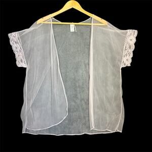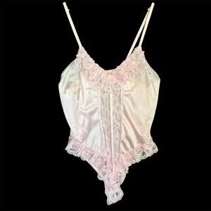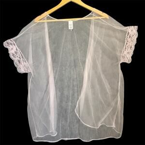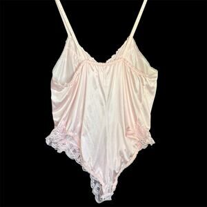 Vintage Lace Teddy Womens 2X Plus Pink Bodysuit Sheer Robe Set Coquette Bridal