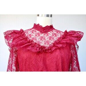 Vintage Lace Maxi Dress in Vibrant Cranberry Color!