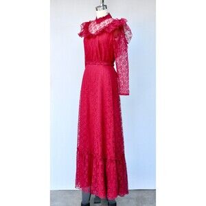 Vintage Lace Victorian Ruffled Lace 70s Maxi Dress Gunnel Sax Style XS