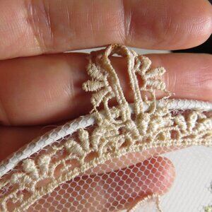 Vintage Lace picture with wire ring 6" Spring Scene Butterfly & Florals