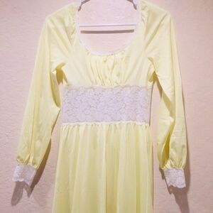 Vintage Lace Nightgown Duster Button down long sleeve Sm Made in USA