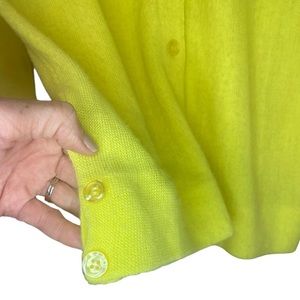 Vintage Lacoste 100% Wool Knit Oversized Button Up V-Neck Sweater Neon Yellow