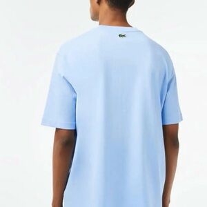 Lacoste mens tee with oversized ambroidered logos, blue.