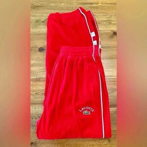 Vintage Lacoste 🐊 Velour | Sweatpants - Joggers | Red & White | Sweatsuit