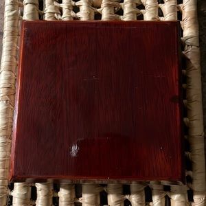 Very pretty little trinket box. It is not marked so unsure of origin or maker. Does have small scratches due to material and age. Size: 5.5” X 5.5” X 2.25”