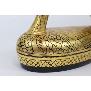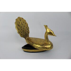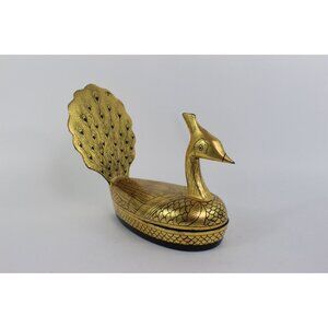 Vintage Lacquer Peacock Box • Hand Painted Kashmiri Papier Mache • Gold Black De