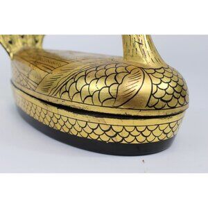 These Kashmiri lacquer boxes were traditionally made in the 1970s–1980s using the naqashi decorative method, which involves multiple layers of lacquer and fine hand-detailed linework. The sculpted tail and detailed patterning make this an attractive decorative piece for a shelf or tabletop.