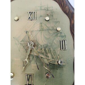 Vintage Lacquered Wood Sailboat Wall Clock Quartz Oval Nautical Design 12 Inch