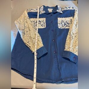 Vintage Lacy AfterNoon L Shell Kepler Rhinestone Button Up Shirt Lace Whimsy