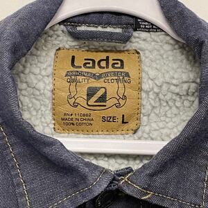 Vintage Lada Mens Size L Sherpa Lined Denim Button up Shaket Jacket Coat