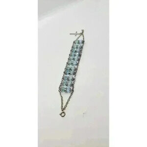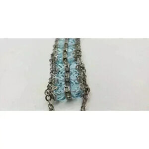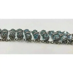 Vintage Ladder Bracelet 925 Sterling Silver Blue Crystal Clear Rhinestone Wide.