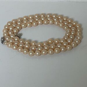 -Beautiful Ladies 32” Strand Of Champagne faux 5mm Pearls With Barrel Clasp
