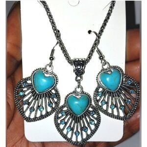 Vintage Boho Jewelry Set Hollow Leaf Shaped Inlay Heart Shape Stone Pendant Necklace & Hook Drop Earrings Jewelry Set For women
