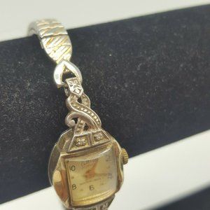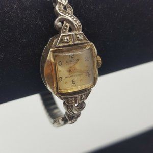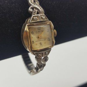 Vintage Ladies Clinton 21 Jewel 10k RGP Bezel With Diamond Accents SWISS RUNS