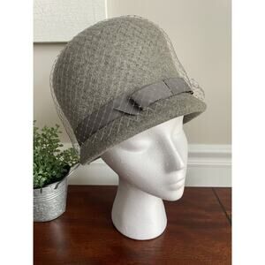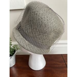Vintage Ladies Henry Pollack Grey 100% Wool Hat Cloche with Ribbon and Netting
