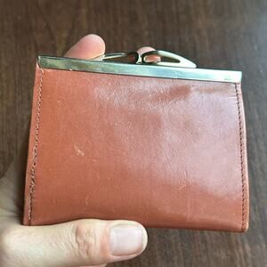 Vintage Ladies Leather Wallet Bordeaux Kiss Lock change Purse