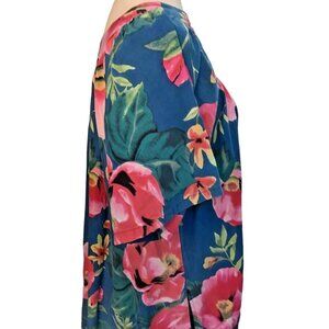 Vintage Ladies Mumu Dress w Pockets Tropical Floral MED Cotton Midi Blue w Pink