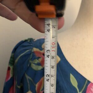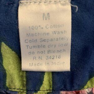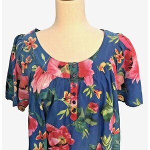 Vintage Ladies Mumu Dress w Pockets Tropical Floral MED Cotton Midi Blue w Pink, made in India.