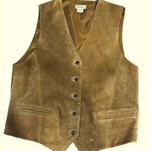 Vintage Ladies Suede 100% Leather Camel Vest Size Medium Fits like a Large