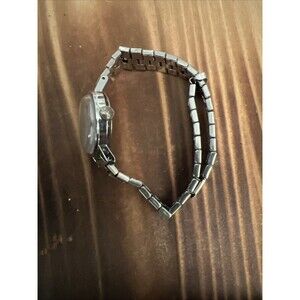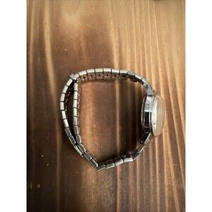 Not working watch, stretchy band clasp lays on top of the band and links in any link very adjustable. Largest wrist size shown in picture. Face is in good condition and easy to read with red seconds hand. Parts and repair NOT working watch