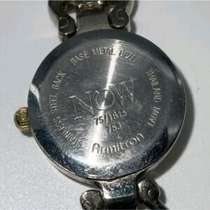 The Vintage Ladies Watch Armitron Now Two Tone 75/1815 753 is a classic wristwatch designed for women. Featuring a gold bezel and silver case, this watch has a quartz movement and gold dial with arrow markers. The stainless steel band in both gold and silver tones adds a touch of elegance, making it suitable for dress/formal or casual occasions. With vintage appeal and a sturdy stainless steel case, this Armitron Now model from Thailand is a stylish and timeless accessory for any woman's collection. Needs battery
