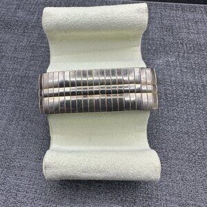 Vintage Ladies Watch Stretch Gold Tone Bracelet Band White Oval Dial Japan