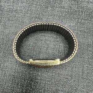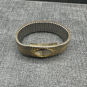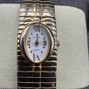 Celebrity Brand Ladies Watch Stretch Gold Tone Bracelet Band White Oval Dial Japan Vtg