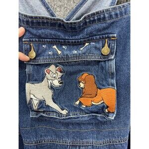 Vintage Lady And The Tramp Denim Overalls Women’s 3X Blue Carpenter Embroidered