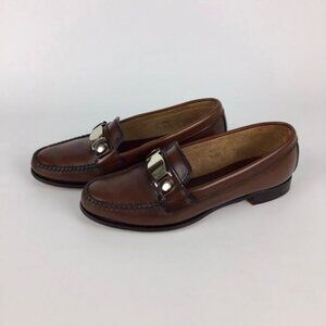 Vintage Lady Bostonian Womens Brown Leather Loafers Silver Buckle Detail size 6