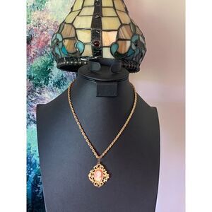 Vintage Lady Cameo (White on Carnelian color base) Pendant with scalloped work on a rope design Chain, in Gold tone
