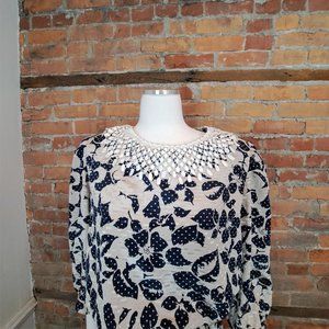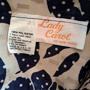 Vintage Lady Carol Dress 1980sNavy Tan Floral Crochet Collar Matching Belt XL