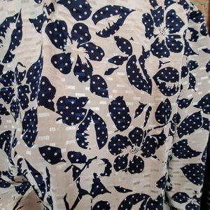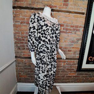 Vintage Lady Carol Dress 1980s Navy Tan Floral Crochet Collar Matching Belt XL
